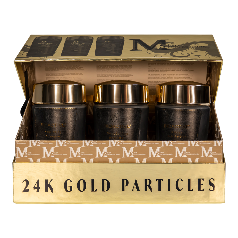 Bioactive 24K Altın Parçacıklı Besleyici Saç Bakım Yağı, anında parlaklık ve ipeksi görünüm verir. Saçı nemlendirir ve antistatik etki oluşturur. Sonuç olağanüstü yumuşaklık ve nemlendirmedir.