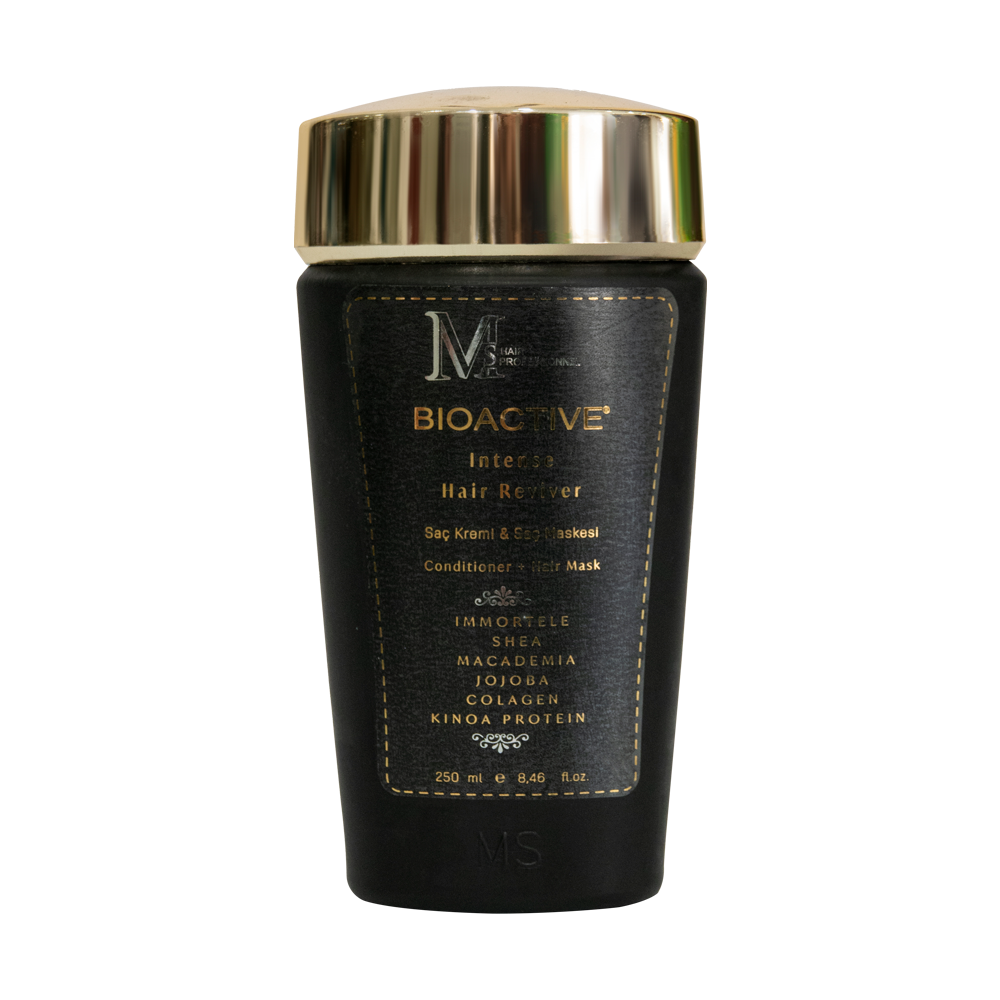 Bioactive 24K Altın Parçacıklı Yoğun Canlandırıcı Kür, saçınızın protein dokusunu oluşturmada, gördüğü işlemler ve güneş, rüzgar, hava kirliliği gibi dış etkenler nedeniyle kırılan yıpranmış saçları onarmada yardımcı olur. Derinlemesine besler ve saçların nem dengesini düzenleyerek kolay tarama sağlar.